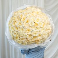 101 кремовая роза (60 см) в дизайнерской упаковке.