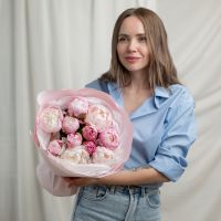 В составе 11 пионов (сорт Гардния) в дизайнерской упаковке.