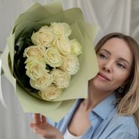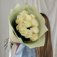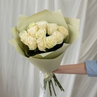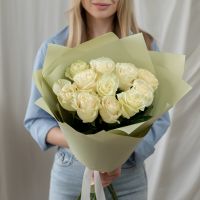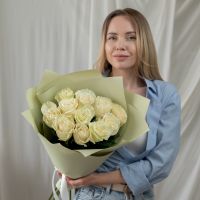 11 белых роз Эквадор (сорт Мондиаль) в стильной упаковке.
