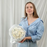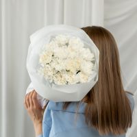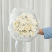 В составе 15 белых диантусов в дизайнерской упаковке.