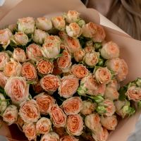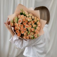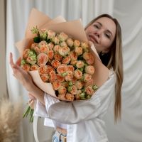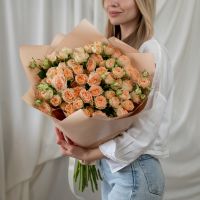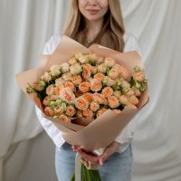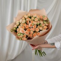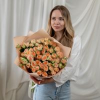 15 кустовых роз (сорт Кения) 50 см в дизайнерской упаковке.