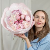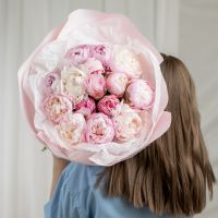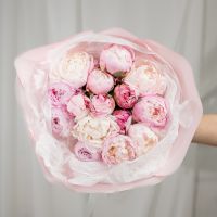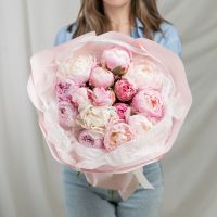 В составе 15 пионов (сорт Гардения) в дизайнерской упаковке.