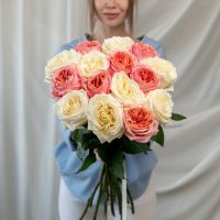 15 пионовидных роз сорт Кендл Лайт (8 шт) ,Пинк Экспрешен (7 шт)