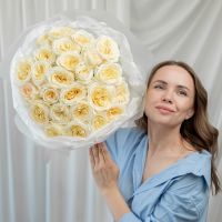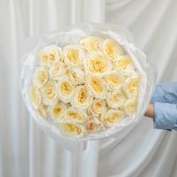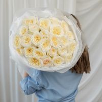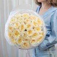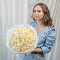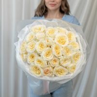 25 кремовых роз (60 см) в дизайнерской упаковке.