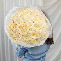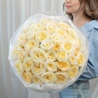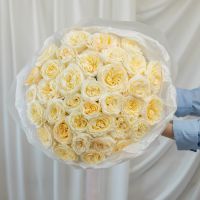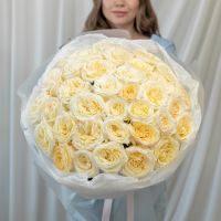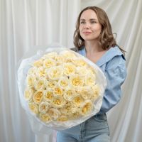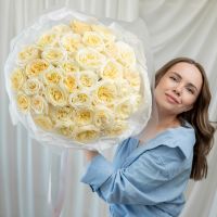 35 кремовых роз (60 см) в дизайнерской упаковке.
