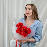 В составе 5 Французскиз роз (сорт Нина) в объемной красивой упаковке.