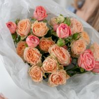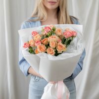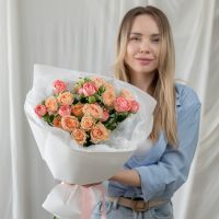 В составе 5 кустовых роз (сорт Кения) 50 см микс с оформлением.