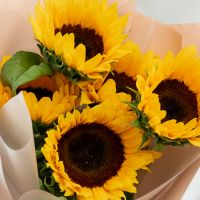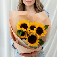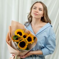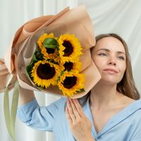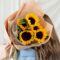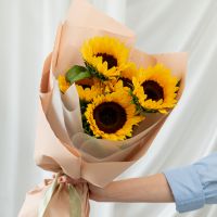 В составе 15 подсолнухов в дизайнерской упаковке.