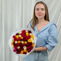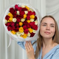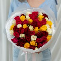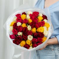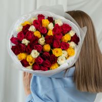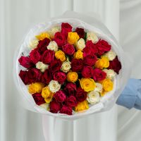 51 роза микс (сорт Кения 40 см) в объемной стильной упаковке.