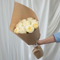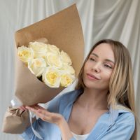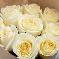 9 кремовых роз (60 см) в дизайнерской упаковке.