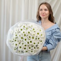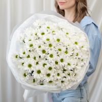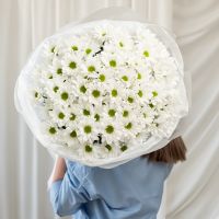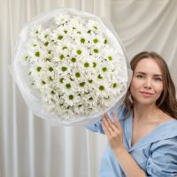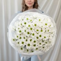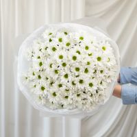 В составе 15 белых хризантем (сорт Бакарди) в дизайнерской упаковке.