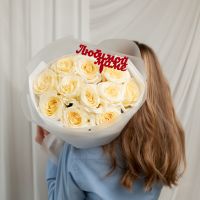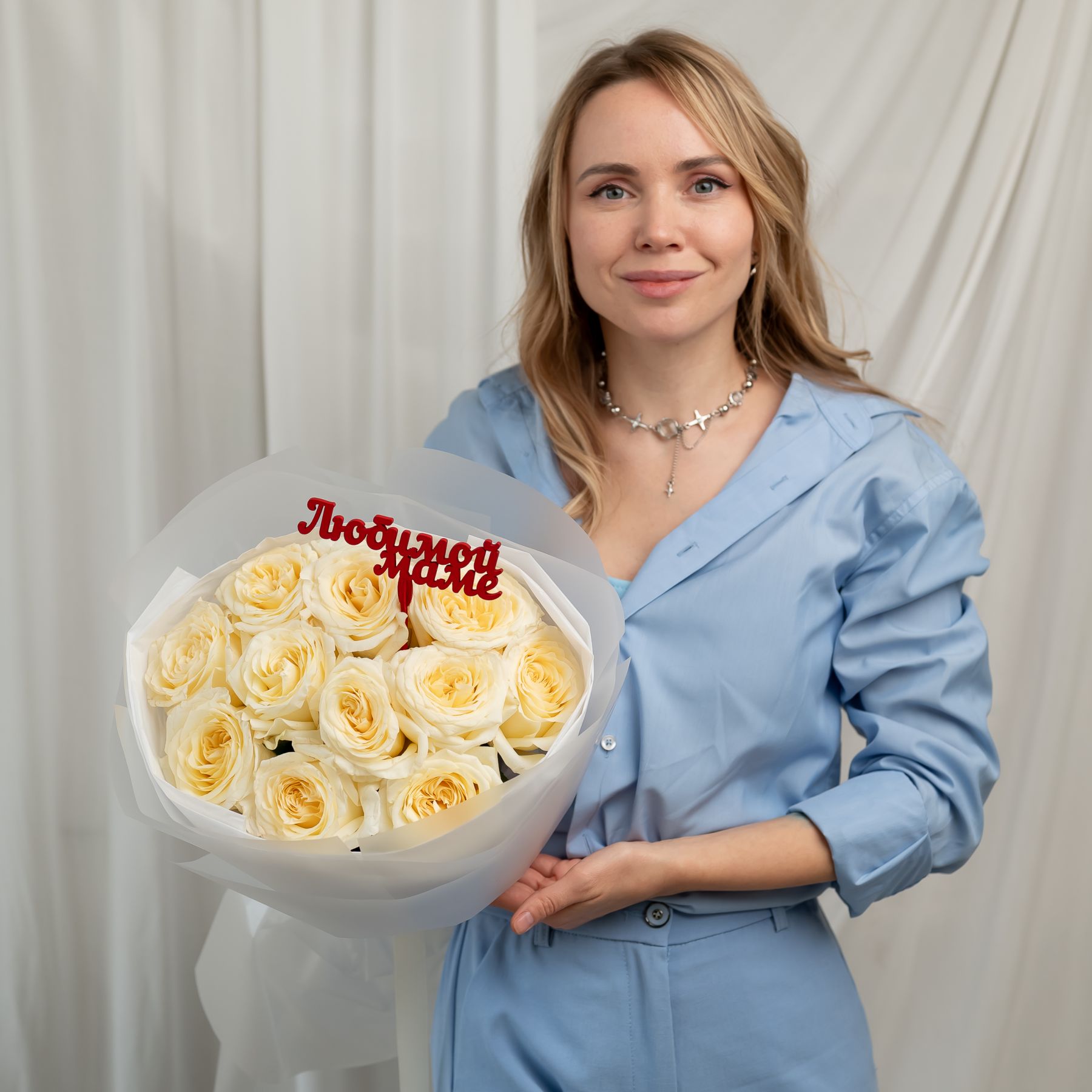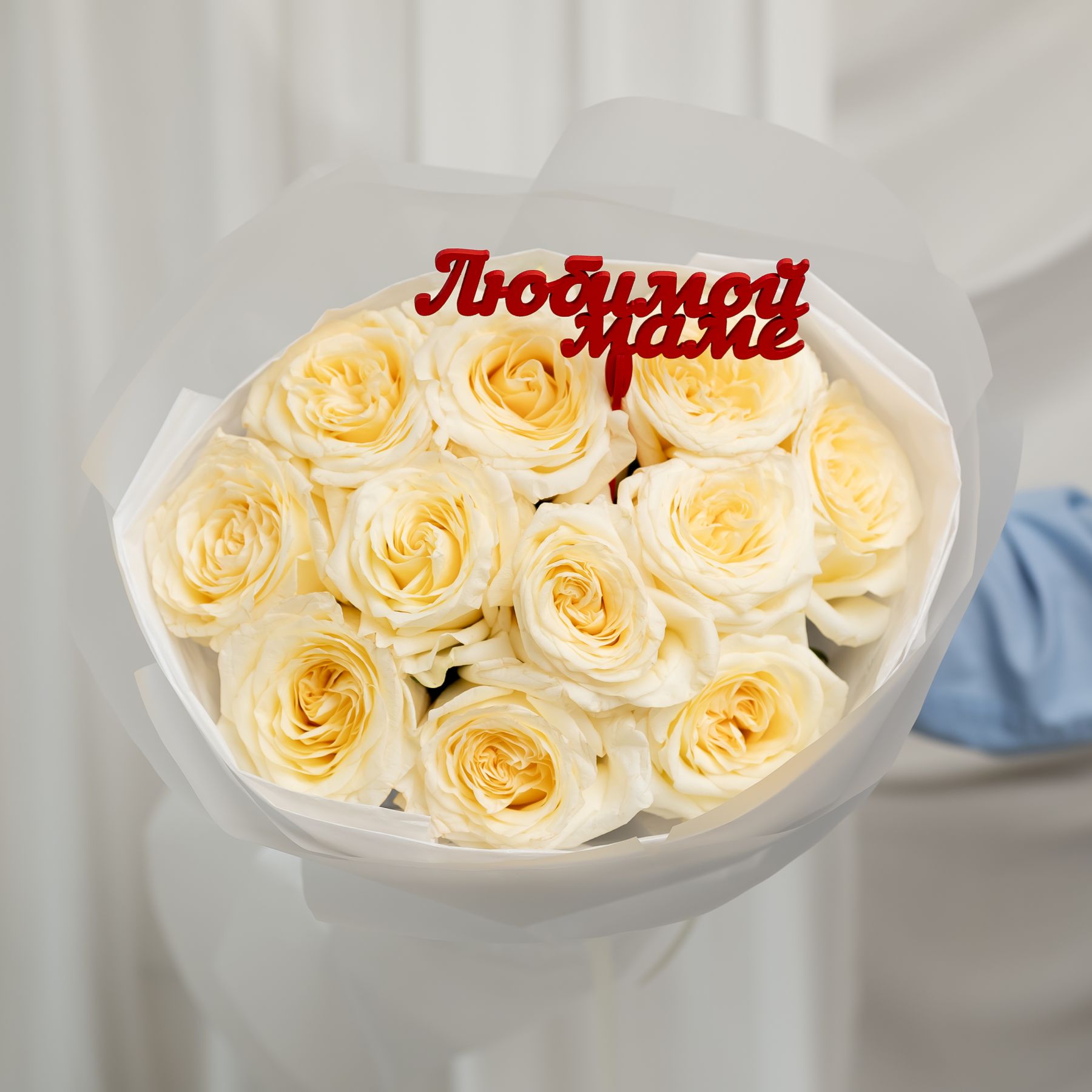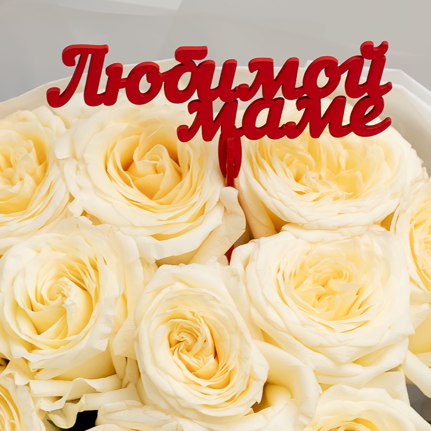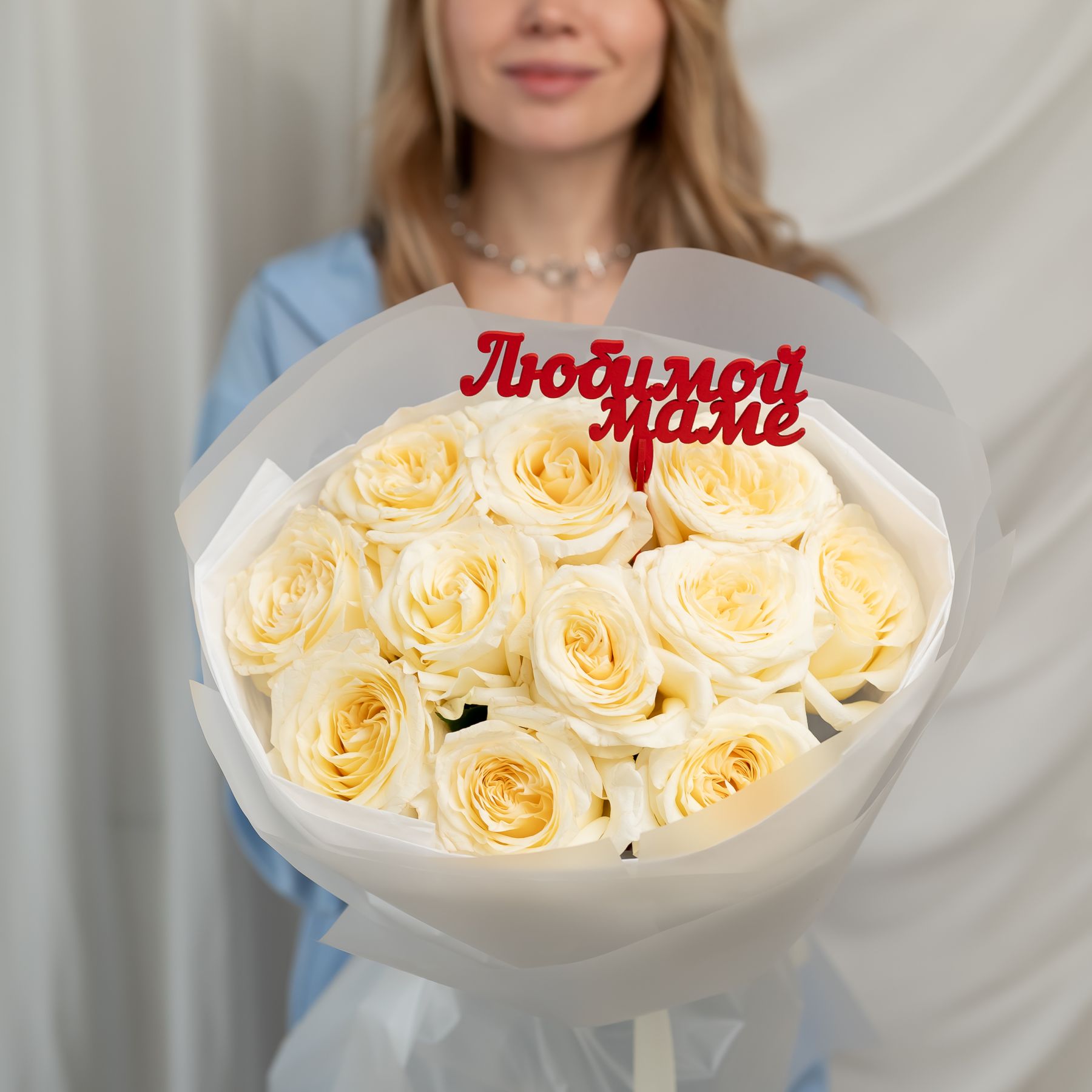 Пионовидная роза 11 шт Кендллайт + топпер "Маме"