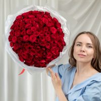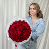 101 красная роза (сорт Кения 40 см) в объемной стильной упаковке.