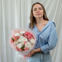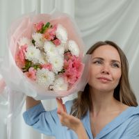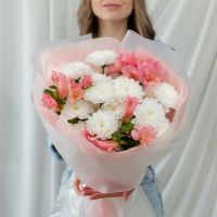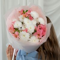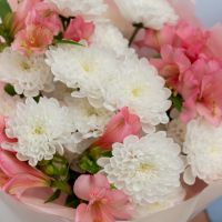 В составе хризантема кустовая (сорт Алтай) 3 шт, альстромерия 3 шт, упаковка дизайнерская.