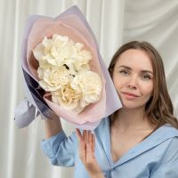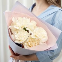 В составе 5 Французскиз роз (сорт Мондиаль) в объемной красивой упаковке.